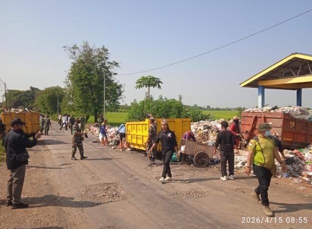 Indramayu, Rajawalimedia.net– Masalah tumpukan sampah yang selama ini menggunung di Tempat Pembuangan Sementara (TPS) Pasir Angin, Desa Cikedung Kecamatan Cikedung, akhirnya mendapatkan penanganan serius. Dalam sebuah aksi nyata yang penuh semangat gotong royong antara Pemerintah Kecamatan (Pemcam) Cikedung bersama anggota Koramil Cikedung dan Relawan Revolusi Cikedung. Mereka melakukan aksi bersih-bersih sampah di TPS tersebut pada Rabu (15/04/26) kemarin.